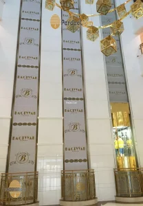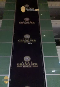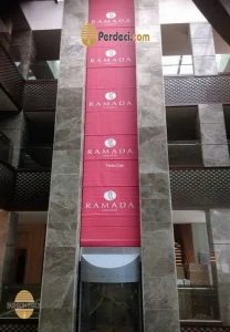 - Otel logosu baskılı reklam perdeleri