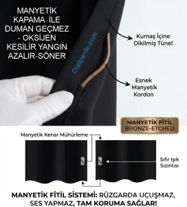 - Alev almaz teknik kumaşlardan üretilir.