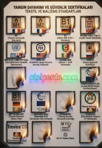 NFPA 701, IMO FTP Code, EN 13773 ve DIN 4102-1 (B1) gibi uluslararası yanmazlık sertifikalarına sahiptir.