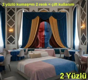 30 yıllık tecrübemizle mekanlarınıza estetik, güvenlik ve akustik konfor sunuyoruz. Çift taraflı kumaşlarımız tek üründe iki renk seçeneği sağlar; perde, masa örtüsü ve yatak örtüsü olarak çok yönlü kullanım sunar.