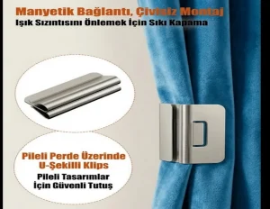 Teknik açıdan Esnek mıknatıs yapısı, her türlü kumaş tipine ve kıvrımlı yüzeye uyum sağlar. Manyetik ekstrafor kullanımı ile perdelerin yıkama sonrası bile performansını koruması sağlanırken, montaj aşamasında da büyük kolaylıklar sunulur: