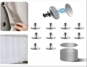 Perde sabitleme mıknatısı: Tekstil ürünlerini belirli bir noktada sabit tutmak veya dekoratif bir form vermek için kullanılır.