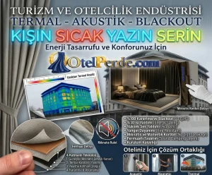 Otel odalarında misafirlerin aradığı sessiz, karanlık ve konforlu ortamı sağlar. Üç katmanlı yapısı tam karartma sunarken termal özelliği enerji tasarrufu sağlar. Uluslararası güvenlik standartları otel satın alma ekipleri için büyük avantajdır.
